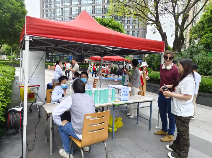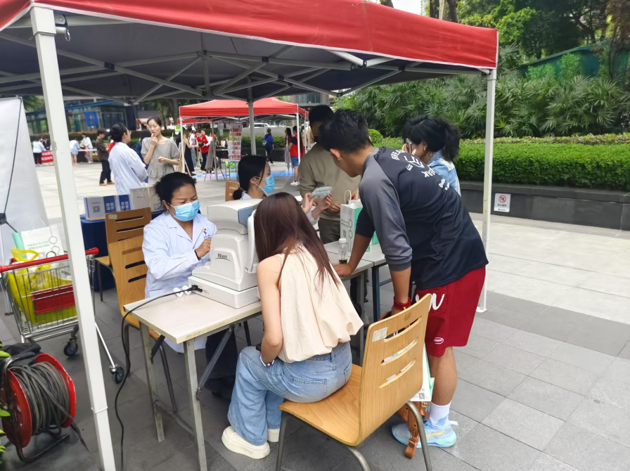 4月28日上午,火车南站街道党工委主办的《青春无压力·畅玩“趣”运动》五一劳动节暨五四青年节主题活动圆满举行。我院眼科·视光中心雷丽、代英两位医生在现场为前来参加活动的辖区职工及居民提供免费视力检测、常见眼病筛查及护眼知识科普服务。活动中,两位医生耐心解答用眼健康问题,针对近视、干眼症等给出个性化建议,吸引了众多群众参与。