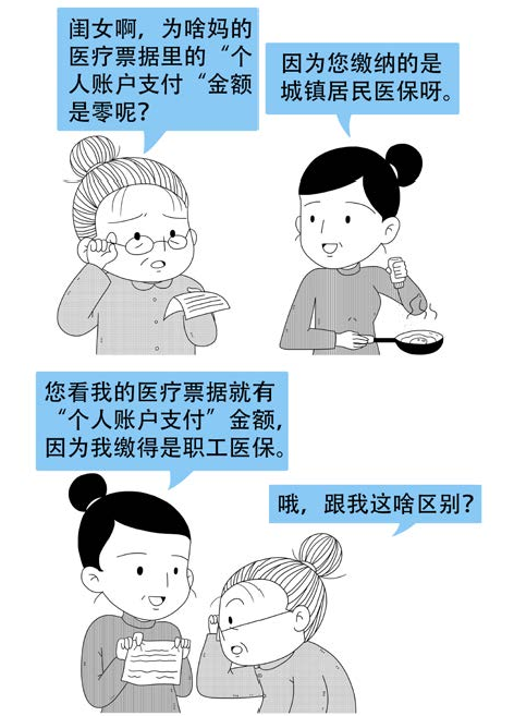答 14.因为张大娘参加的是城乡居民医疗保险 , 王大妈参加的是职工基本医疗保险,两个人参加的是不同类型的医保。由于职工基本医疗保险与城乡居民医疗保险这两个险种在参保和筹资上有差别,职工医疗保险年均缴费要几千元,居民医疗保险年人均缴费只有几百元,报销待遇不同,所以报销的费用也不同 。