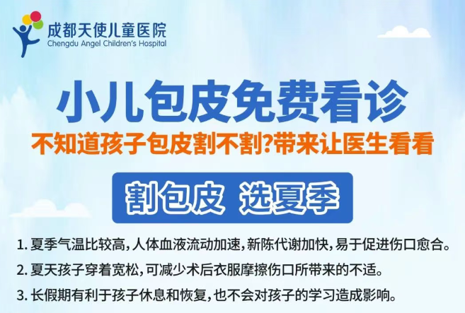 孩子的包皮情况正常吗?需要处理吗?什么时候处理最合适?别担心!成都天使儿童医院小儿外科专家来为您提供专业解答!我们深知家长的疑虑与关心。本周六、周日上午(7月26日、7月27日)、下周一上午(7月28日),我院特别开展“...